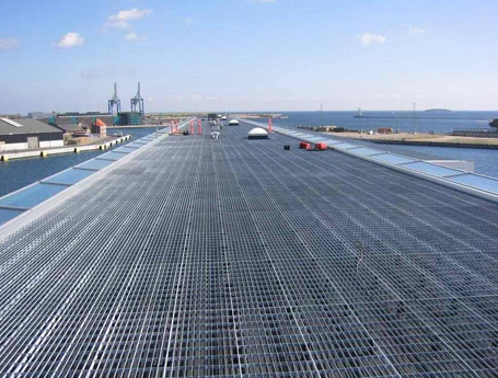 碼頭鋼格柵板 1:高強度,輕結構 2:防腐能力強,經久耐用 3:外形美觀,表面亮澤 4:不積污物,不積雨雪,不積水,自清潔,易于維護 5:通風,采光,散熱,防滑,防爆性好 ···